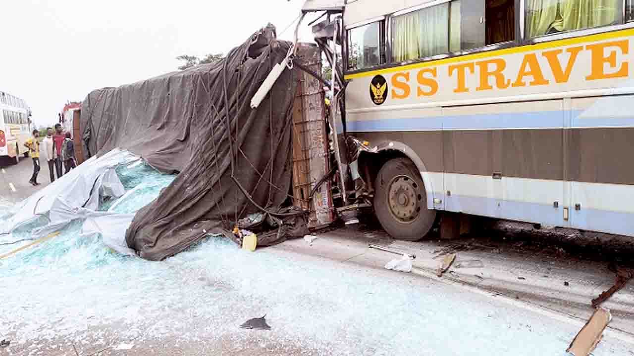 ಬೆಳಗಾವಿ ಜಿಲ್ಲೆಯ ಕಿತ್ತೂರು ತಾಲೂಕಿನ ಅಂಬಡಗಟ್ಟಿ ಕ್ರಾಸ್ ಬಳಿ ವೇಗದಲ್ಲಿದ್ದ ಖಾಸಗಿ ಬಸ್ಸೊಂದು ಹಿಂಬದಿಯಿಂದ ಟ್ರಕ್ಕಿಗೆ ಡಿಕ್ಕಿ ಹೊಡೆದ ಪರಿಣಾಮ ಭೀಕರ ಅಪಘಾತ ಸಂಭವಿಸಿ, ಟ್ರಕ್ ಪಲ್ಟಿಯಾಗಿದೆ. ಘಟನೆಯಲ್ಲಿ ಟ್ರಕ್ ಚಾಲಕ ಗಂಭೀರವಾಗಿ ಗಾಯಗೊಂಡಿದ್ದಾನೆ.