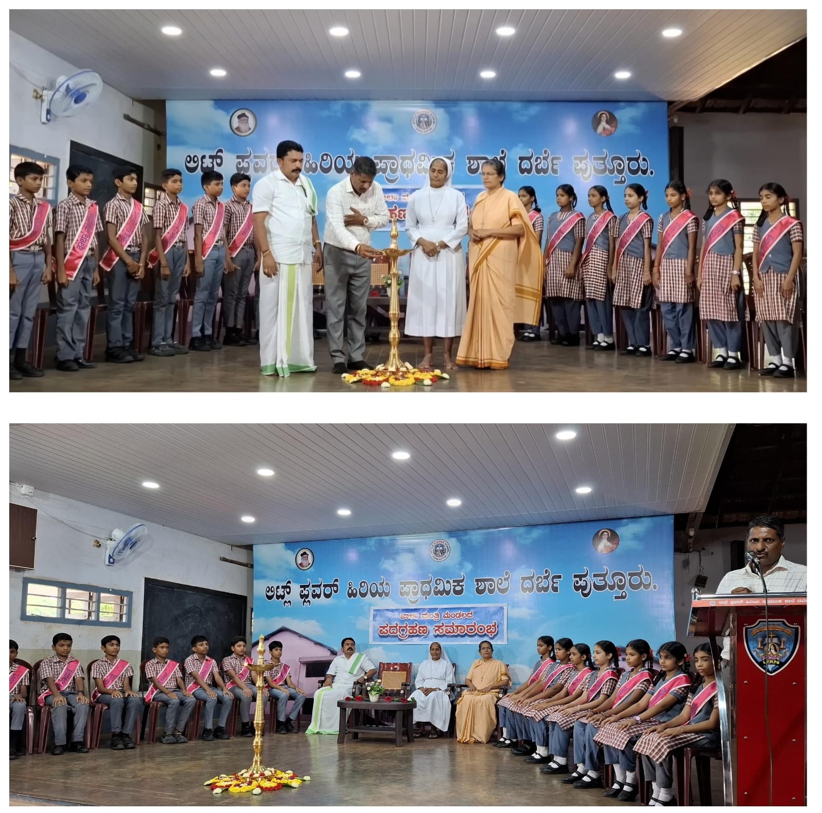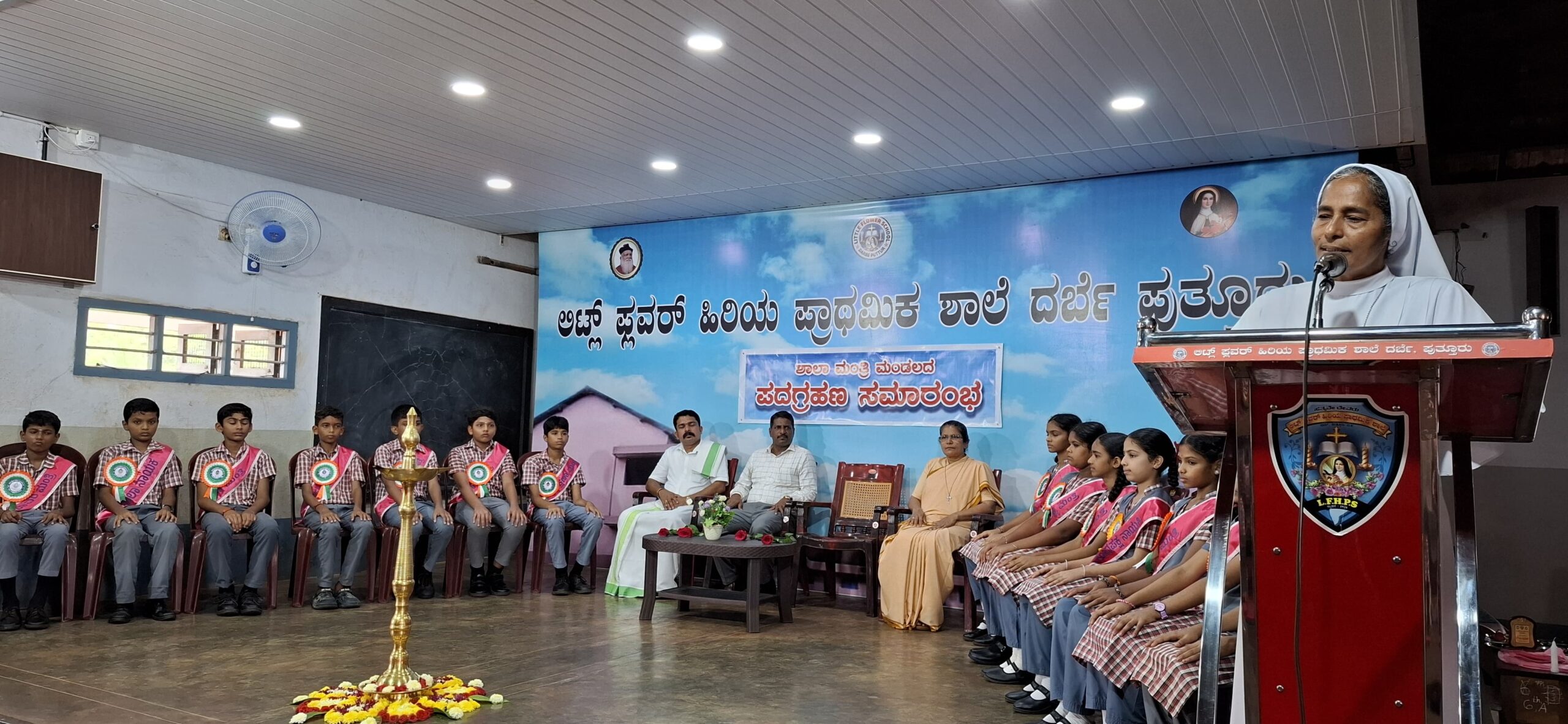ಪುತ್ತೂರು:ಲಿಟ್ಲ್ ಫ್ಲವರ್ ಶಾಲೆಯಲ್ಲಿ ಶಾಲಾ ಮಂತ್ರಿ ಮಂಡಲದ ಪದಗ್ರಹಣ ಕಾರ್ಯಕ್ರಮವು ಶಾಲಾ ಸಂಚಾಲಕಿ ವಂದನೀಯ ಭಗಿನಿ ಪ್ರಶಾಂತಿ ಬಿ ಎಸ್ ಅಧ್ಯಕ್ಷ ತೆಯಲ್ಲಿ ನೆರವೇರಿತು. ಅಕ್ಕರೆ ನ್ಯೂಸ್ ಪುತ್ತೂರು ಇದರ ಸಂಸ್ಥಾಪಕರು, ಕೋಡಿಂಬಾಡಿ ಗ್ರಾಮ ಪಂಚಾಯತ್ ಉಪಾಧ್ಯಕ್ಷರು ಶ್ರೀ ಜಯ ಪ್ರಕಾಶ್ ಬದಿನಾರು ಉದ್ಘಾಟನೆ ನೆರವೇರಿಸಿ ಮಾತನಾಡಿ ಭಾರತ ಪ್ರಜಾಪ್ರಭುತ್ವ ದೇಶ, ನಾಯಕತ್ವ ಭಾರತೀಯರ ರಕ್ತದಲ್ಲಿದೆ, ಭವ್ಯ ಭವಿಷ್ಯದ ನಾಯಕರನ್ನು ಸೃಷ್ಟಿ ಸುವ ಕೆಲಸ ಶಾಲೆಯಿಂದಲೇ ಆರಂಭ ವಾಗುವುದು ಉತ್ತಮ ಬೆಳವಣಿಗೆ, ಇಲ್ಲಿನ ಮಕ್ಕಳ ಶಿಸ್ತು ಅನುಕರಣೀಯ ಎಂದರು.ವೇದಿಕೆಯಲ್ಲಿ ಶಾಲಾ ರಕ್ಷಕ ಶಿಕ್ಷಕ ಸಂಘದ ಉಪಾಧ್ಯಕ್ಷರು, ಮಹಾಲಿಂಗೇಶ್ವರ ದೇವಸ್ಥಾನ ಪುತ್ತೂರು ಇಲ್ಲಿನ ವ್ಯವಸ್ಥಾಪನ ಸಮಿತಿ ಸದಸ್ಯರು ಶ್ರೀ ವಿನಯ ಸುವರ್ಣ ಹಾಗೂ ಮುಖ್ಯ ಶಿಕ್ಷಕಿ ಭಗಿನಿ ಪ್ರಶಾಂತಿ ಬಿ ಎಸ್ ಉಪಸ್ಥಿತರಿದ್ದರು.