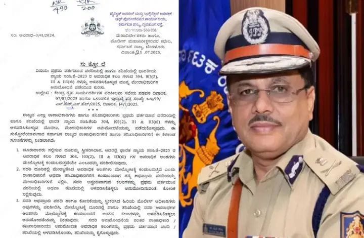 ಬೆಂಗಳೂರು:ಇನ್ಮುಂದೆ ಪ್ರಥಮ ವರ್ತಮಾನ ವರದಿಯಲ್ಲಿ ಹಾಗೂ ತನಿಖೆಯಲ್ಲಿ ಭಾರತೀಯ ನ್ಯಾಯ ಸಂಹಿತೆ-2023ರ ಅಪರಾಧಿಕ ಕಲಂಗಳಾದ 304, 103(2), 111 ಮತ್ತು 113(ಬಿ)ಗಳನ್ನು ಅಳವಡಿಸಿಕೊಳ್ಳುವ ಮುನ್ನ ಮೇಲಾಧಿಕಾರಿಗಳ ಅನುಮೋದನೆ ಪಡೆಯುವುದು ಕಡ್ಡಾಯಗೊಳಿಸಿ ಕರ್ನಾಟಕ ಡಿಜಿ-ಐಜಿಪಿ ಡಾ.ಎಂ.ಎ ಸಲೀಂ...
