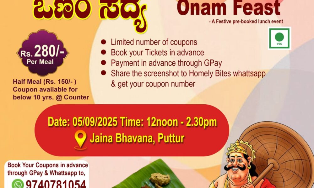 ಹೋಮ್ಲಿ ಬೈಟ್ಸ್ …ಕಳೆದೆರಡು ವರ್ಷದಿಂದ ಶುದ್ಧ ಹಾಗೂ ಸಾಂಪ್ರದಾಯಿಕ ಶೈಲಿಯ ತಿಂಡಿ ತಿನಿಸುಗಳನ್ನು ನೀಡುತ್ತಿದ್ದು ಜನ ಮನ್ನಣೆ ಗಳಿಸಿದೆ. ಇದೀಗ …ಪ್ರಪ್ರಥಮ ಬಾರಿಗೆ ಪುತ್ತೂರಿನಲ್ಲಿ… ಓಣಂ ಹಬ್ಬದ ಪ್ರಯುಕ್ತ, ನೆರೆ ರಾಜ್ಯ ಕೇರಳದಲ್ಲಿ..ಜಾತಿ ,ಮತ, ರಾಜಕೀಯ...