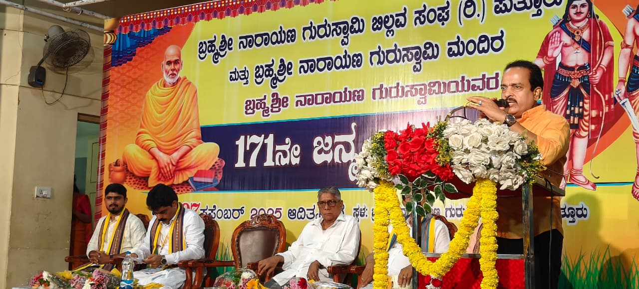 ಅವರು ಶ್ರೀನಾರಾಯಣ ಗುರುಸ್ವಾಮಿ ಬಿಲ್ಲವ ಸಂಘ ಪುತ್ತೂರು, ನಾರಾಯಣ ಗುರು ಸ್ವಾಮಿ ಮಂದಿರ ಇದರ ಜಂಟಿ ಆಶ್ರಯದಲ್ಲಿ ಬ್ರಹ್ಮಶ್ರೀ ಸಭಾಭವನದಲ್ಲಿ ನಡೆದ 171ನೇ ನಾರಾಯಣ ಗುರು ಜಯಂತಿ ಕಾರ್ಯಕ್ರಮದಲ್ಲಿ ಭಾಗವಹಿಸಿ ಮಾತನಾಡಿದರು.