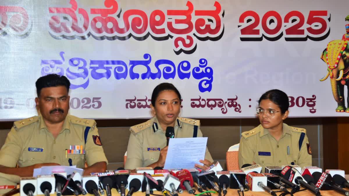 ಖಾಸಗಿ ಹೋಟೆಲ್ನಲ್ಲಿ ಕರೆದ ಸುದ್ದಿಗೋಷ್ಠಿಯಲ್ಲಿ ದಸರಾದ ಜಂಬೂಸವಾರಿ ಮೆರವಣಿಗೆ ಹಾಗೂ ಸುರಕ್ಷತೆ, ಸುಗಮ ಮತ್ತು ಸಾಂಪ್ರದಾಯಿಕ ದಸರಾ ಆಚರಣೆಯ ಸಿದ್ಧತೆ ಹಾಗೂ ಜಂಬೂಸವಾರಿ ಮೆರವಣಿಗೆಯ ಭದ್ರತೆ ಬಗ್ಗೆ ಪೊಲೀಸ್ ಅಯುಕ್ತರು ಮಾಹಿತಿ ನೀಡಿದರು.