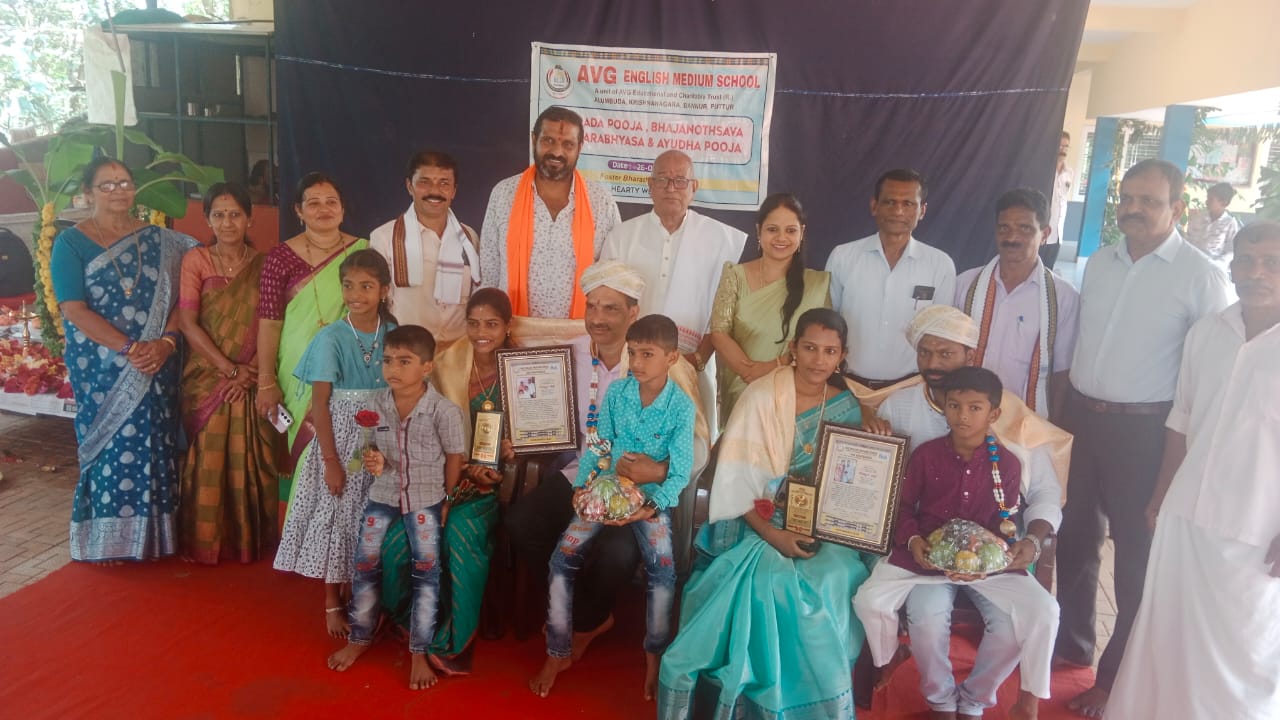 ಪುತ್ತೂರು ಬನ್ನೂರಿನ ಎವಿಜಿ ಆಂಗ್ಲ ಮಾಧ್ಯಮ ಶಾಲೆಯಲ್ಲಿ ದಿನಾಂಕ 26/ 9 /2025 ರಂದು ಶಾರದ ಪೂಜೆ ,ಭಜನೋತ್ಸವ, ಅಕ್ಷರಾಭ್ಯಾಸ ಮತ್ತು ಆಯುಧ ಪೂಜೆಯನ್ನು ಬಹಳ ವಿಜೃಂಭಣೆಯಿಂದ ನಡೆಸಲಾಯಿತು.ಮಕ್ಕಳಿಂದ ದೀಪ ಬೆಳಗಿಸಿ,ಭಜನೆಯನ್ನು ಹಾಡುವ ಮೂಲಕ ಕಾರ್ಯಕ್ರಮಕ್ಕೆ ಚಾಲನೆ ನೀಡಲಾಯಿತು. ಈ ಕಾರ್ಯಕ್ರಮದಲ್ಲಿ ಮುಖ್ಯ ಅತಿಥಿಯಾಗಿದ್ದ ರಾಜ್ಯ ಧಾರ್ಮಿಕ ಪರಿಷತ್ತಿನ ಮಾಜಿ ಸದಸ್ಯರಾದ ಶ್ರೀ ಮುರಳಿ ಕೃಷ್ಣ ಹಸಂತಡ್ಕ ರವರು ಮಾತನಾಡಿ ಶಿಕ್ಷಣದ ಮುಖ್ಯ ಗುರಿ ಜ್ಞಾನ ಸಂಪಾದನೆ. ಜ್ಞಾನದಿಂದ ಸಮಾಜದ ಪರಿವರ್ತನೆ ಕೆಲಸ ಸಾಧ್ಯ ಎಂಬುದನ್ನು ತಿಳಿಸಿದರು.ಜಗತ್ತಿನಲ್ಲಿ ದೈವಿ ಶಕ್ತಿಯ ಕಾರಣದಿಂದ ಪ್ರತಿಯೊಂದು ಅ ಅಣುರೇಣುಗಳು ಬದುಕಲು ಸಾಧ್ಯ ,ಹಾಗಾಗಿ ಎಲ್ಲರೂ ಉತ್ತಮ ಪ್ರಜೆಗಳಾಗಿ ಬಾಳಿ ಎಲ್ಲರೂ ನಮ್ಮವರು ಎಂಬ ಯೋಚನೆ ನಮ್ಮಲ್ಲಿ ಬರಬೇಕು .ಮಕ್ಕಳಲ್ಲಿ ಸಂಸ್ಕೃತಿ ಬೆಳೆಯುವುದು ಭಜನೆ ,ಪೂಜೆ ಮೂಲಕ ಸಾಧ್ಯ ಎನ್ನುವ ಅರಿವು ಮೂಡಿಸಿದರು. ಎವಿಜಿ ಸಂಸ್ಥೆಯು ಮಕ್ಕಳಿಗೆ ಜ್ಞಾನ ಸಂಪಾದನೆಯನ್ನು ಧಾರೆ ಎರೆಯುತ್ತಿದೆ ಎಂದು ಸಂಸ್ಥೆಯ ಬಗ್ಗೆ ಶ್ಲಾಘನೆ ವ್ಯಕ್ತಪಡಿಸಿದರು.