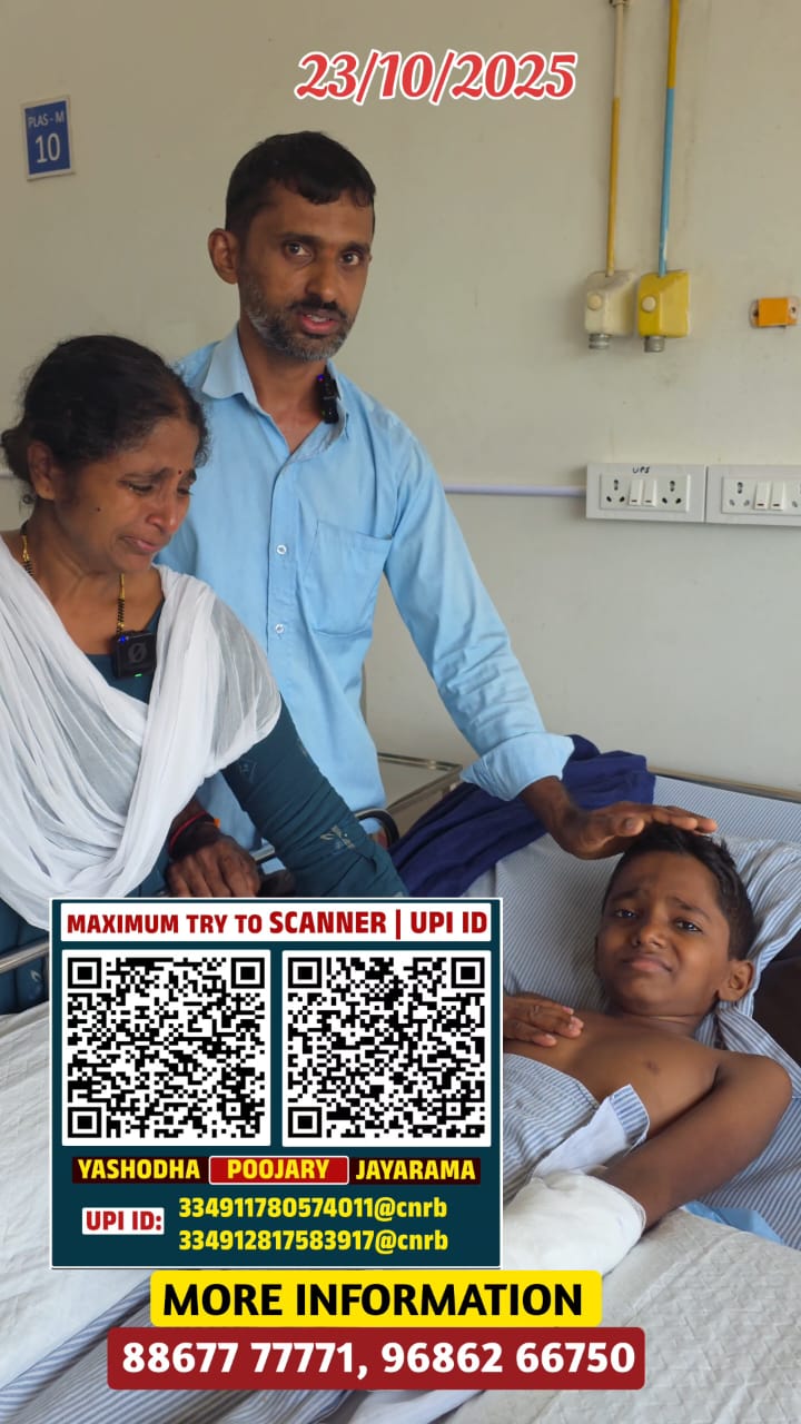 ವಿಟ್ಲ ಮಾಣಿಲ ಗ್ರಾಮದ ಗುತ್ತಿನಬೈಲು ನಿವಾಸಿ ಜಯರಾಮ ಪೂಜಾರಿಯವರ ಮಗನಾದ 7ನೇ ತರಗತಿಯಲ್ಲಿ ಕಲಿಯುತ್ತಿರುವ ಗೌತಮ್ ಎಂಬ ಸಣ್ಣ ಹುಡುಗ ದೀಪಾವಳಿ ಹಬ್ಬದ ಪ್ರಯುಕ್ತ ಪಟಾಕಿ ಸಿಡಿಸುವ ಸಂದರ್ಭದಲ್ಲಿ ಎರಡು ಕೈಗಳು ಸುಟ್ಟು ಚಿಂತಾಜನಕ ಸ್ಥಿತಿಯಲ್ಲಿ ಮಂಗಳೂರಿನ ಆಸ್ಪತ್ರೆಯಲ್ಲಿ ಚಿಕಿತ್ಸೆ ಪಡೆಯುತ್ತಿದ್ದಾನೆ. ಕೂಲಿ ಕೆಲಸ ಮಾಡಿ ಜೀವನ ಸಾಗಿಸುತ್ತಿರುವ ಈ ಕುಟುಂಬಕ್ಕೆ ಮುಂದಿನ ಚಿಕಿತ್ಸೆಗೆ ದಿಕ್ಕು ತೋಚದಂತಾಗಿದೆ. ಚಿಕಿತ್ಸೆ ಗಾಗಿ ಧನಸಹಾಯ ಅಗತ್ಯವಿರುತ್ತದೆ.