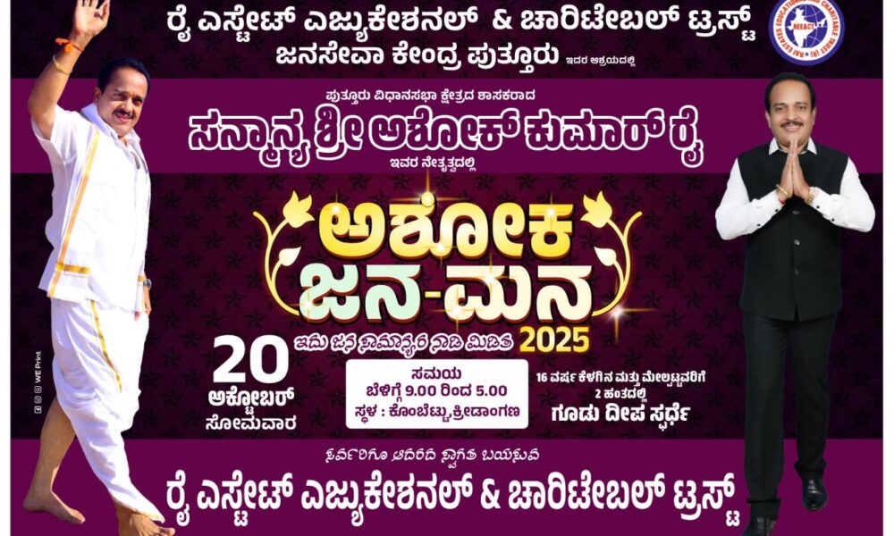 ಪುತ್ತೂರಿನ ಜನಪ್ರಿಯ ಶಾಸಕರಾದ ಸನ್ಮನ್ಯ ಶ್ರೀ ಅಶೋಕ್ ಕುಮಾರ್ ರೈ ಸಾರಥ್ಯದಲ್ಲಿ ನಡೆಯುವ ದಿನಾಂಕ 20-10-2025 ಸೋಮವಾರಂದು ನಡೆಯುವ ಜನಮನ ಕಾರ್ಯಕ್ರಮಕ್ಕೆ ಸ್ವಯಂ ಸೇವಕರ ಸಭೆ ಕರೆಯಲಾಗಿದೆ .ಇದೇ ಬರುವ ತಾರೀಕು 18-10-2025 ರಂದು ಸಂಜೆ...