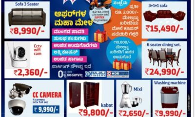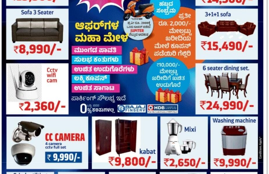 ಪುತ್ತೂರು: ಇಲ್ಲಿನ ಕೋರ್ಟ್ ರಸ್ತೆಯಲ್ಲಿ ಸ್ಟೇಟ್ ಬ್ಯಾಂಕ್ ಆಫ್ ಇಂಡಿಯಾದ ಕೆಳಗಡೆ ಸುಮಾರು 16 ವರ್ಷಗಳಿಂದ ಕಾರ್ಯನಿರ್ವಹಿಸುತ್ತಿರುವ ಪ್ರಖ್ಯಾತ ಪ್ರತಿಷ್ಠಿತ ಎಲೆಕ್ಟ್ರಾನಿಕ್ ಮಳಿಗೆಯಾದ ಎಲೆಕ್ಟ್ರಾನಿಕ್ ನವರಿಂದ ಕಿಲ್ಲೆ ಮೈದಾನದ ಪುತ್ತೂರು ಟೌನ್ ಹಾಲ್ನಲ್ಲಿ ದೀಪಾವಳಿ ಮೆಗಾ...