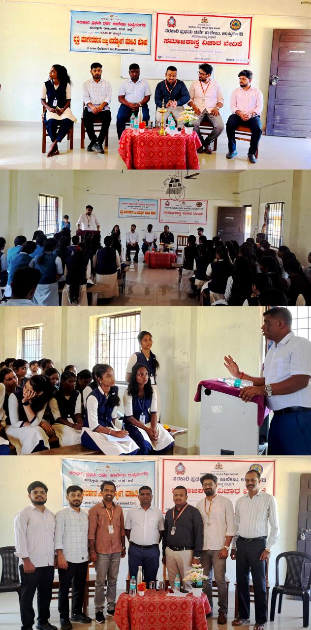 ಸರ್ಕಾರಿ ಪ್ರಥಮ ದರ್ಜೆ ಕಾಲೇಜು, ಉಪ್ಪಿನಂಗಡಿಯ ಪ್ಲೇಸ್ಮೆಂಟ್ ಸೆಲ್ , ಸಮಾಜಶಾಸ್ತ್ರ ವಿಚಾರ ವೇದಿಕೆ ಮತ್ತು ಆಂತರಿಕ ಗುಣಮಟ್ಟ ಖಾತರಿ ಘಟಕ (IQAC) ಗಳ ಸಹಯೋಗದೊಂದಿಗೆ “ಸ್ಪರ್ಧಾತ್ಮಕ ಪರೀಕ್ಷೆಗಳತ್ತ ಸರಿಯಾದ ದೃಷ್ಟಿಕೋನ”(Right Approach Towards Competitive Exams) ಎಂಬ ವಿಷಯದ ಕುರಿತು ಒಂದು ದಿನದ ಕಾರ್ಯಾಗಾರವನ್ನು ಕಾಲೇಜಿನ ಸ್ನಾತಕೋತ್ತರ ವಿಭಾಗದ ಕಟ್ಟಡದಲ್ಲಿ ಆಯೋಜಿಸಿತು. ಕಾರ್ಯಕ್ರಮವನ್ನು ಕಾಲೇಜಿನ ಪ್ರಾಂಶುಪಾಲರಾದ ಶ್ರೀ ರವಿರಾಜ ಎಸ್. ಅವರ ಅನುಪಸ್ಥಿತಿಯಲ್ಲಿ ವಿದ್ಯಾರ್ಥಿಕ್ಷೇಮಪಾಲನಾಧಿಕಾರಿಯಾದ ಸಹಾಯಕ ಪ್ರಾಧ್ಯಾಪಕರಾದ ಮಂಜುನಾಥರವರು ಕಾರ್ಯಕ್ರಮದಲ್ಲಿ ಉಪಸ್ಥಿತರಿದ್ದರು.