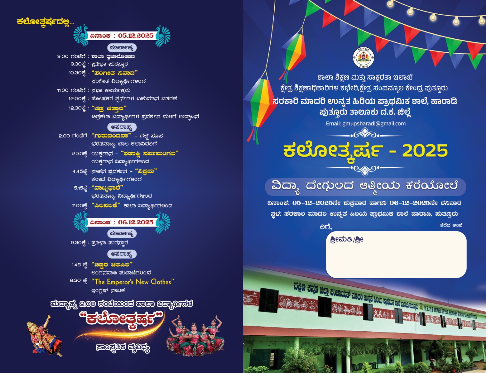 ಡಿ 5 ಮತ್ತು6ರಂದು ಹಾರಾಡಿ ಶಾಲೆ ಯಲ್ಲಿ ಕಲೋತ್ಕರ್ಷ – 2025