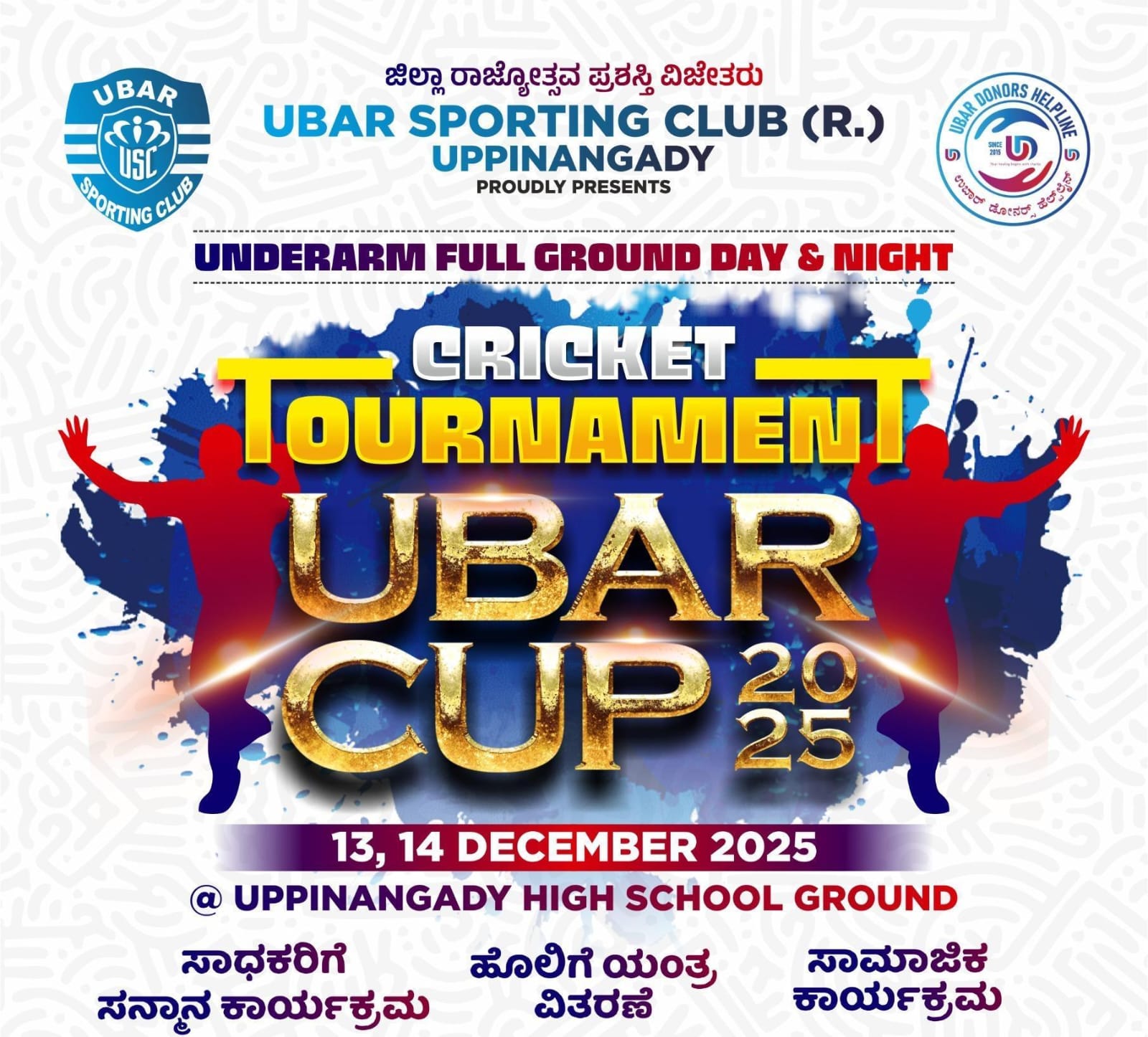 ಸಮಾಜ ಸೇವಾ ಕ್ಷೇತ್ರದಲ್ಲಿ ಮಾಡಿದ ಸೇವೆಯನ್ನು ಗುರುತಿಸಿ 2025ನೇ ಸಾಲಿನ ದಕ್ಷಿಣ ಕನ್ನಡ ಜಿಲ್ಲಾ ಮಟ್ಟದ ರಾಜ್ಯೋತ್ಸವ ಪ್ರಶಸ್ತಿಗೆ ಆಯ್ಕೆಯಾದ ಉಪ್ಪಿನಂಗಡಿಯ ಹೆಮ್ಮಯ ಗರಿ ಉಬಾರ್ ಸ್ಪೋರ್ಟಿಂಗ್ ಕ್ಲಬ್ (ರಿ.)ವತಿಯಿಂದ ಡಿ.13, 14: ರಂದು ಜಿಲ್ಲಾ ಮಟ್ಟದ ‘ಉಬಾರ್ ಕಪ್’ ಕ್ರಿಕೆಟ್ ಪಂದ್ಯಾಟ ನಡೆಯಲಿದೆ.