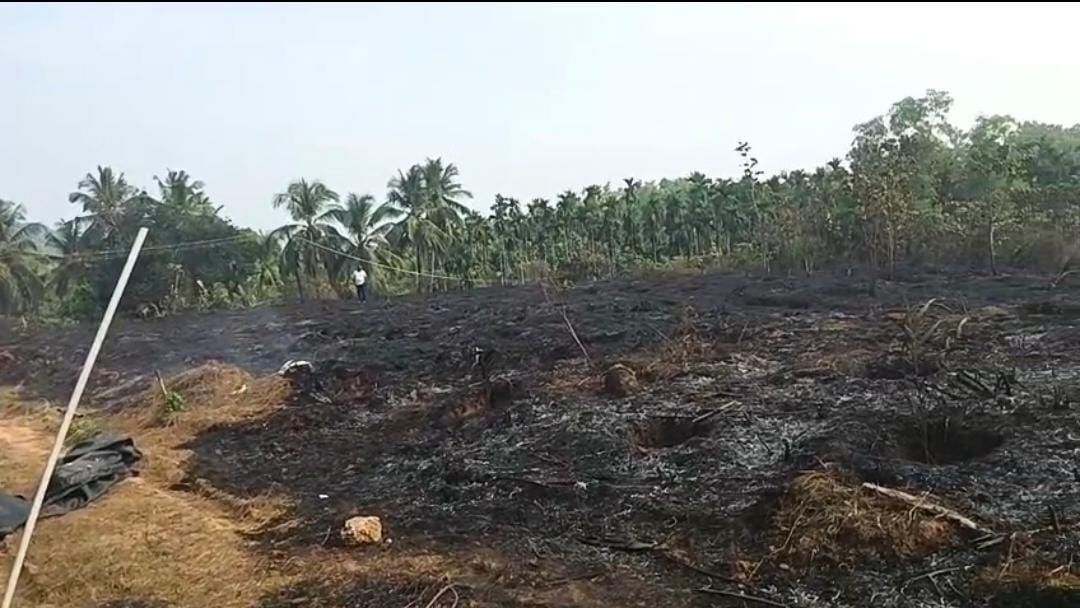 ಪುತ್ತೂರು.ಜ.06: ಪುತ್ತೂರು ತಾಲೂಕು ಕುರಿಯ ಬೂಡಿಯಾರು ಗಣೇಶ್ ರೈಗಳ ತೋಟಕ್ಕೆ ಕರೆಂಟ್ ಲೈನ್ ನ ವೈರ್ ಕಡಿದು ಬಿದ್ದು ಬೆಂಕಿ ಹತ್ತಿಕ್ಕೊಂಡು ಉರಿದು ಸುಮಾರು 900ಅಡಿಕೆ ಗಿಡ ಸಂಪೂರ್ಣ ಭಸ್ಮ.. ಸಮಯಕ್ಕೆ ಅಗ್ನಿಶಾಮಕ ದಳದವರು ಬಂದು ಬೆಂಕಿಯನ್ನು ನಂದಿಸಿ ಪರಿಸ್ಥಿತಿ ವಿಕೋಪಕ್ಕೆ ಹೋದಂತೆ ನೋಡಿಕ್ಕೊಂಡರು.