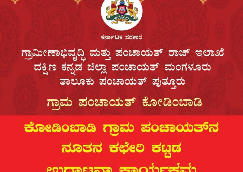 ಪುತ್ತೂರು: ಗ್ರಾಮೀಣಾಭಿವೃದ್ಧಿ ಮತ್ತು ಪಂಚಾಯತ್ ರಾಜ್ ಇಲಾಖೆ, ದಕ್ಷಿಣ ಕನ್ನಡ ಜಿಲ್ಲಾ ಪಂಚಾಯತ್, ತಾಲೂಕು ಪಂಚಾಯತ್ ಪುತ್ತೂರು ಮತ್ತು ಗ್ರಾಮ ಪಂಚಾಯತ್ ಕೋಡಿಂಬಾಡಿ ವತಿಯಿಂದ ಕೋಡಿಂಬಾಡಿ ಗ್ರಾಮ ಪಂಚಾಯತಿನ ನೂತನ ಕಚೇರಿ ಕಟ್ಟಡ ಉದ್ಘಾಟನಾ ಸಮಾರಂಭ...