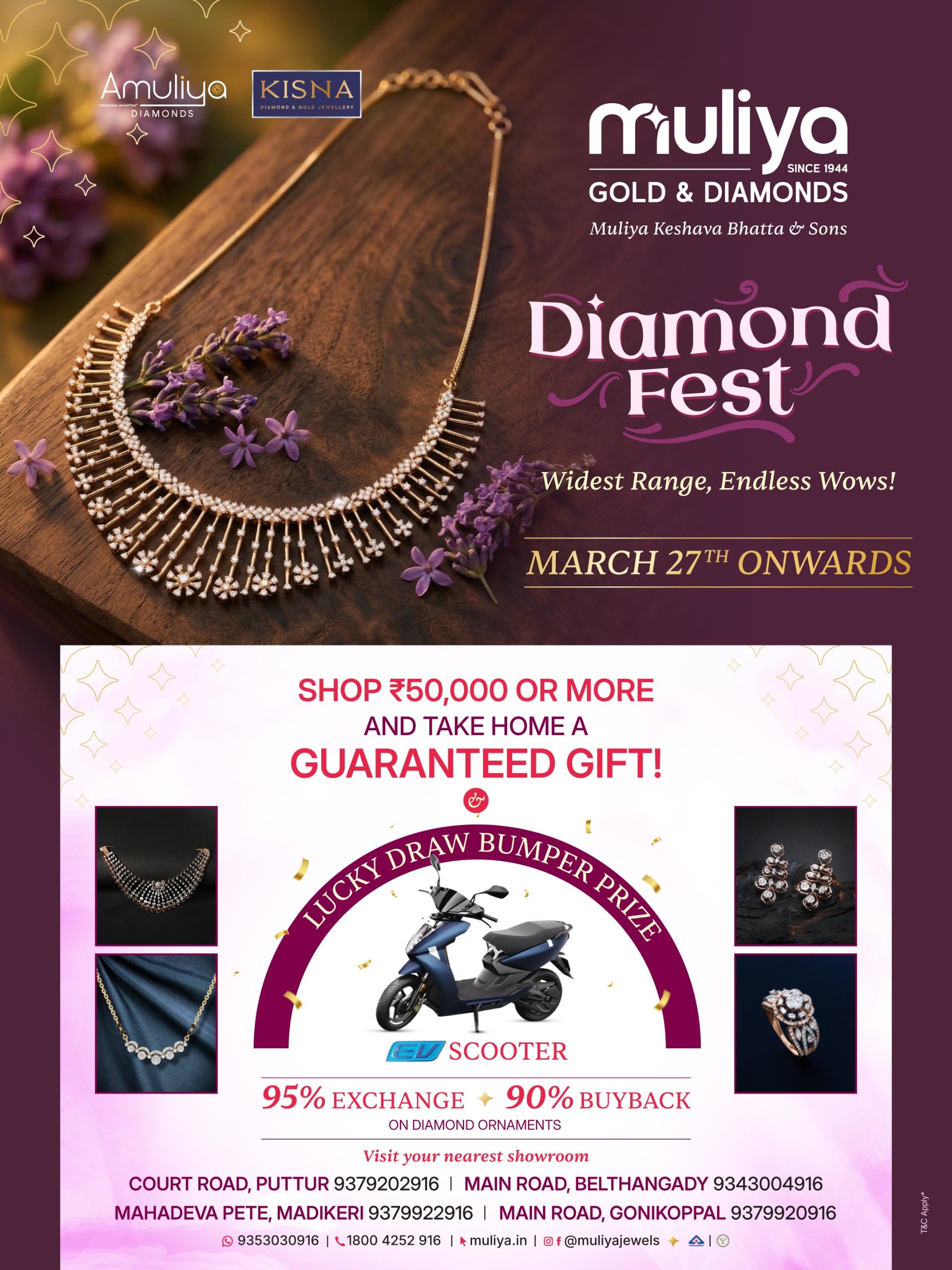 ಪುತ್ತೂರು, ಬೆಳ್ತಂಗಡಿ, ಮಡಿಕೇರಿ ಹಾಗೂ ಗೋಣಿಕೊಪ್ಪ ಈ ನಾಲ್ಕು ಶಾಖೆಗಳಲ್ಲಿ ಡೈಮಂಡ್ ಫೆಸ್ಟ್ ನಡೆಯುತ್ತಿದೆ.