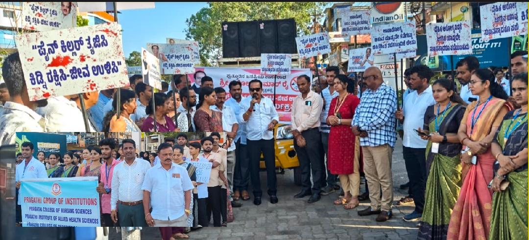 ಪುತ್ತೂರು: “ಪೈನ್ ಕಿಲ್ಲರ್ ತ್ಯಜಿಸಿ-ಕಿಡ್ನಿ ರಕ್ಷಿಸಿ-ಜೀವ ಉಳಿಸಿ” ಎಂಬ ಜನಜಾಗೃತಿ ಕಾರ್ಯಕ್ರಮ ಪ್ರಗತಿ ಇನ್ಸ್ಟಿಟ್ಯೂಟ್ ಆಫ್ ಸೈನ್ಸ್ ಬೋಳ್ವಾರ್ ನ ವಿದ್ಯಾರ್ಥಿಗಳ ಜೊತೆಯಲ್ಲಿ ಜಾಥಾದೊಂದಿಗೆ ದರ್ಬೆ ಸರ್ಕಲ್ ಬಳಿಯಿಂದ ಬೊಳ್ವಾರ್ ವರೆಗೆ ಪುತ್ತೂರಿನ ಶಾಸಕ ಅಶೋಕ್ ಕುಮಾರ್ ರೈ ಅವರ ನೇತೃತ್ವದಲ್ಲಿ ಎ.6ರಂದು ನಡೆಯಿತು.