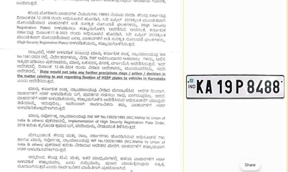 (ಏ.03): ಕೇಂದ್ರ ರಸ್ತೆ ಸಾರಿಗೆ ಮತ್ತು ಹೆದ್ದಾರಿ ಸಚಿವಾಲಯವು ಕರ್ನಾಟಕದಲ್ಲಿ (ಕರ್ನಾಟಕ ) ಎಲ್ಲಾ ವಾಹನಗಳಿಗೆ ಹೈ ಸೆಕ್ಯುರಿಟಿ ರಿಜಿಸ್ಟ್ರೇಶನ್ ಪ್ಲೇಟ್ (HSRP) ಗಳನ್ನು ಕಡ್ಡಾಯಗೊಳಿಸಿ ಆದೇಶ ಹೊರಡಿಸಿತ್ತು. ಆದ್ರೆ ಕರ್ನಾಟಕದಲ್ಲಿ ಈ ಯೋಜನೆ ವಿಫಲವಾಗಿದ್ದು,...