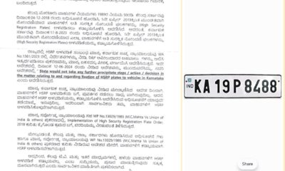 ಬೆಂಗಳೂರು ಎಪ್ರಿಲ್ 04: ರಾಜ್ಯದಲ್ಲಿ 2019ರ ಏಪ್ರಿಲ್ 1ಕ್ಕಿಂತ ಮೊದಲು ನೋಂದಾಯಿತವಾಗಿರುವ ಎಲ್ಲಾ ಹಳೆಯ ವಾಹನಗಳಿಗೆ ಹೈ ಸೆಕ್ಯುರಿಟಿ ನೋಂದಣಿ ಪ್ಲೇಟ್ (HSRP) ಅಳವಡಿಸುವುದು ಕಡ್ಡಾಯವಾಗಿದ್ದು, ಈ ನಿಯಮದಲ್ಲಿ ಯಾವುದೇ ಬದಲಾವಣೆ ಮಾಡಿಲ್ಲ ಎಂದು ರಾಜ್ಯ...